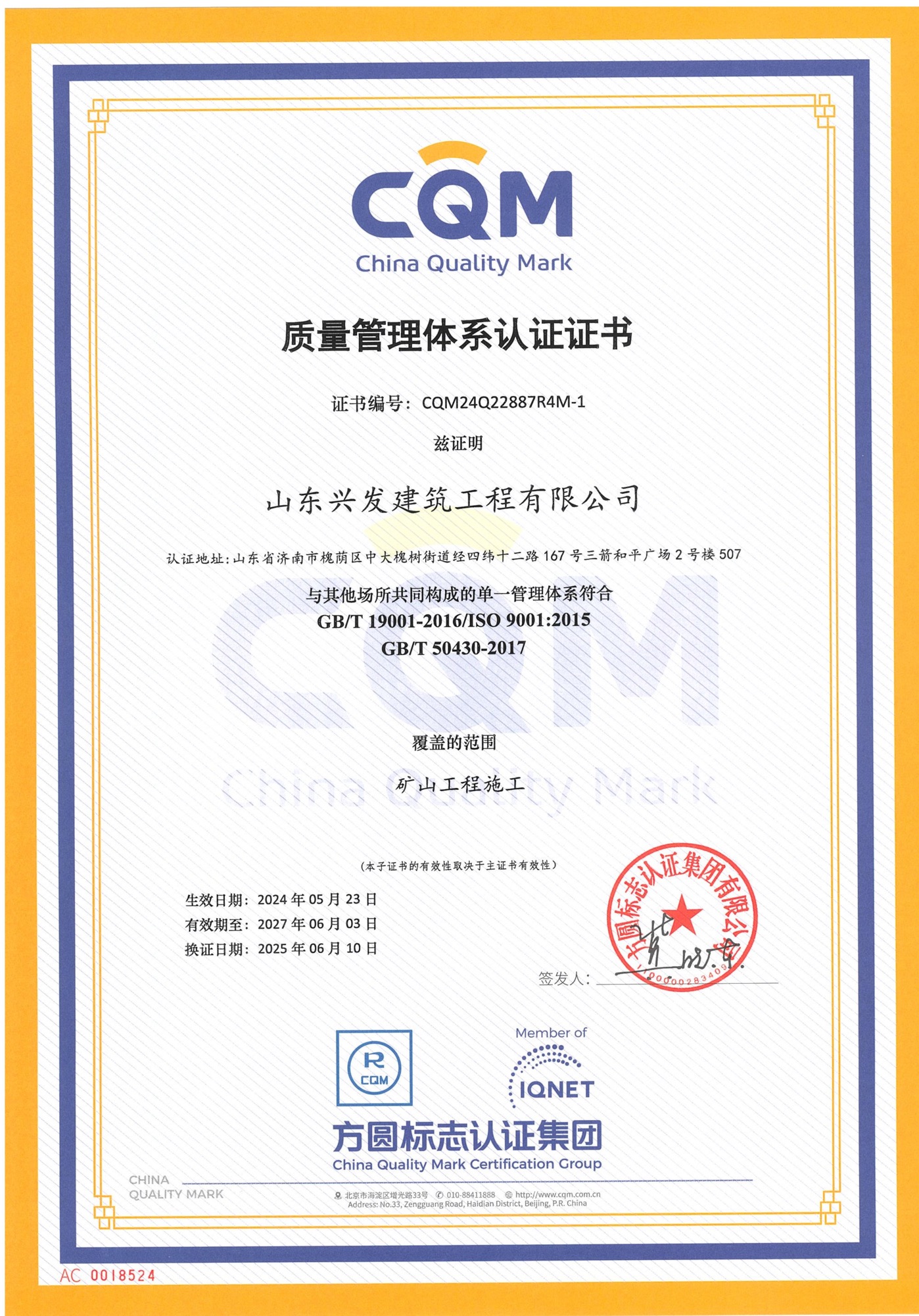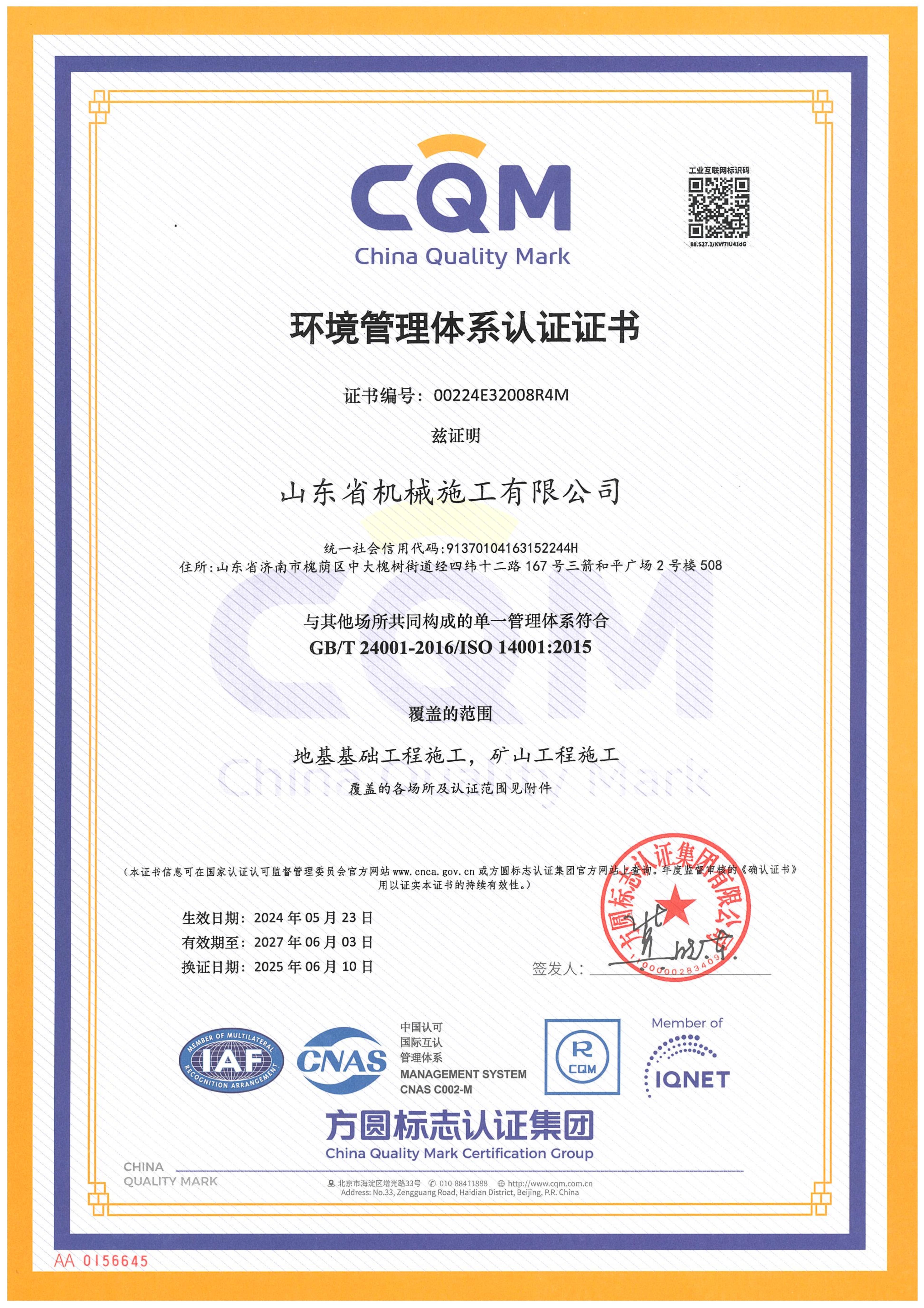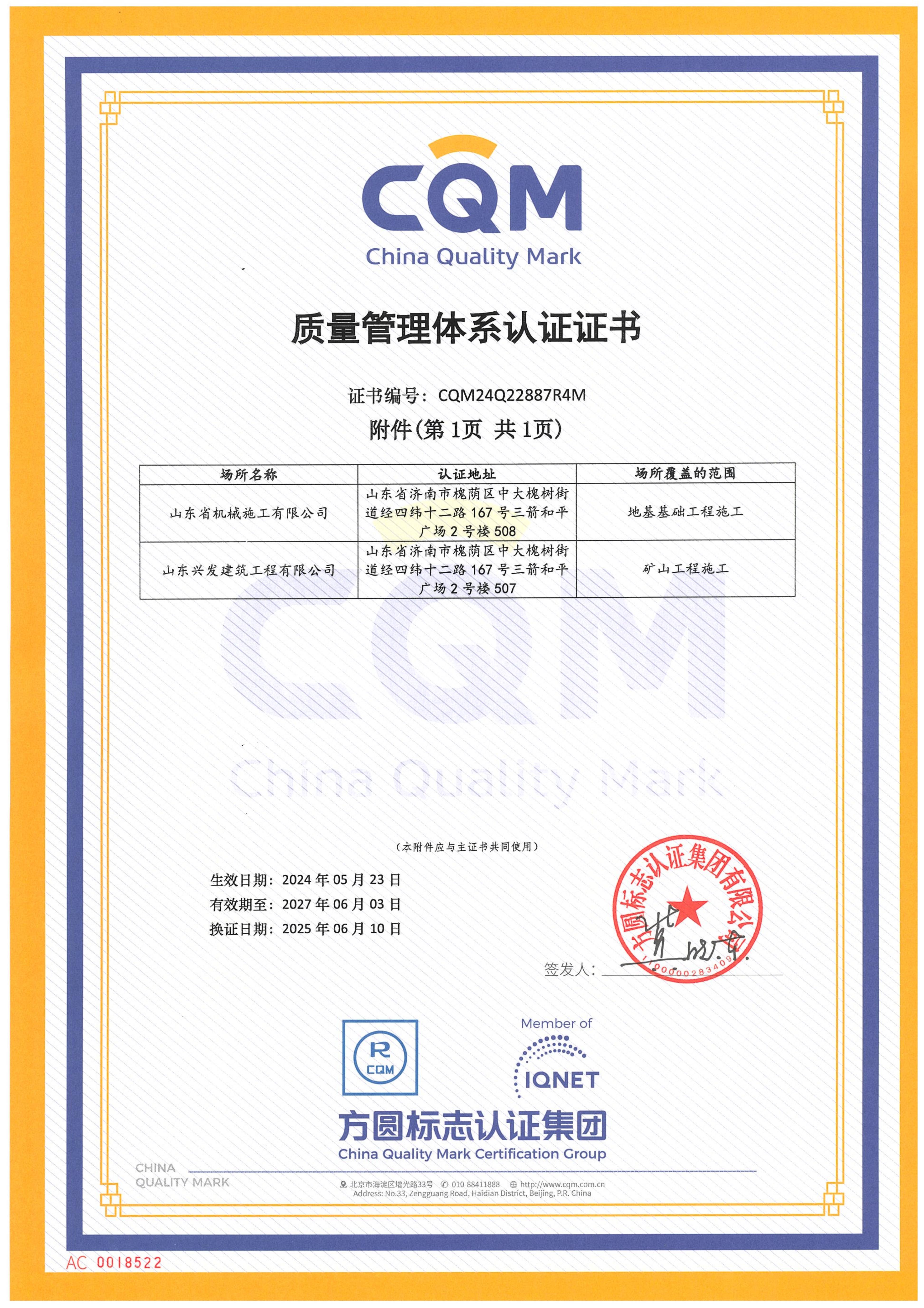 山東省機械施工有限公司資質(zhì)證書