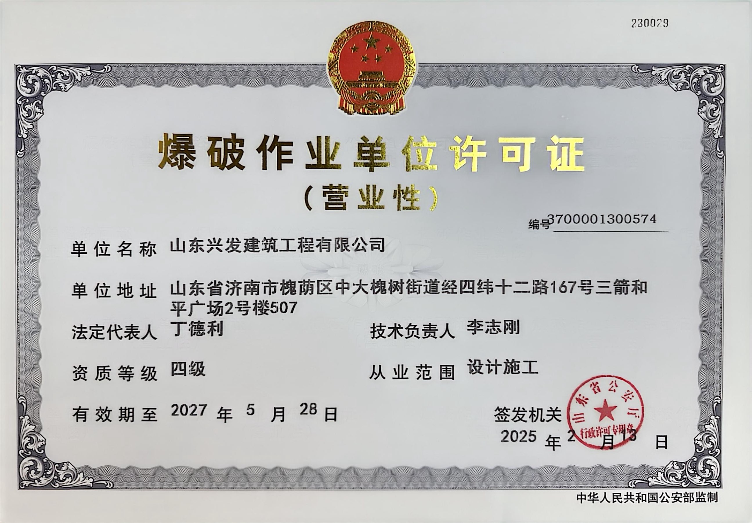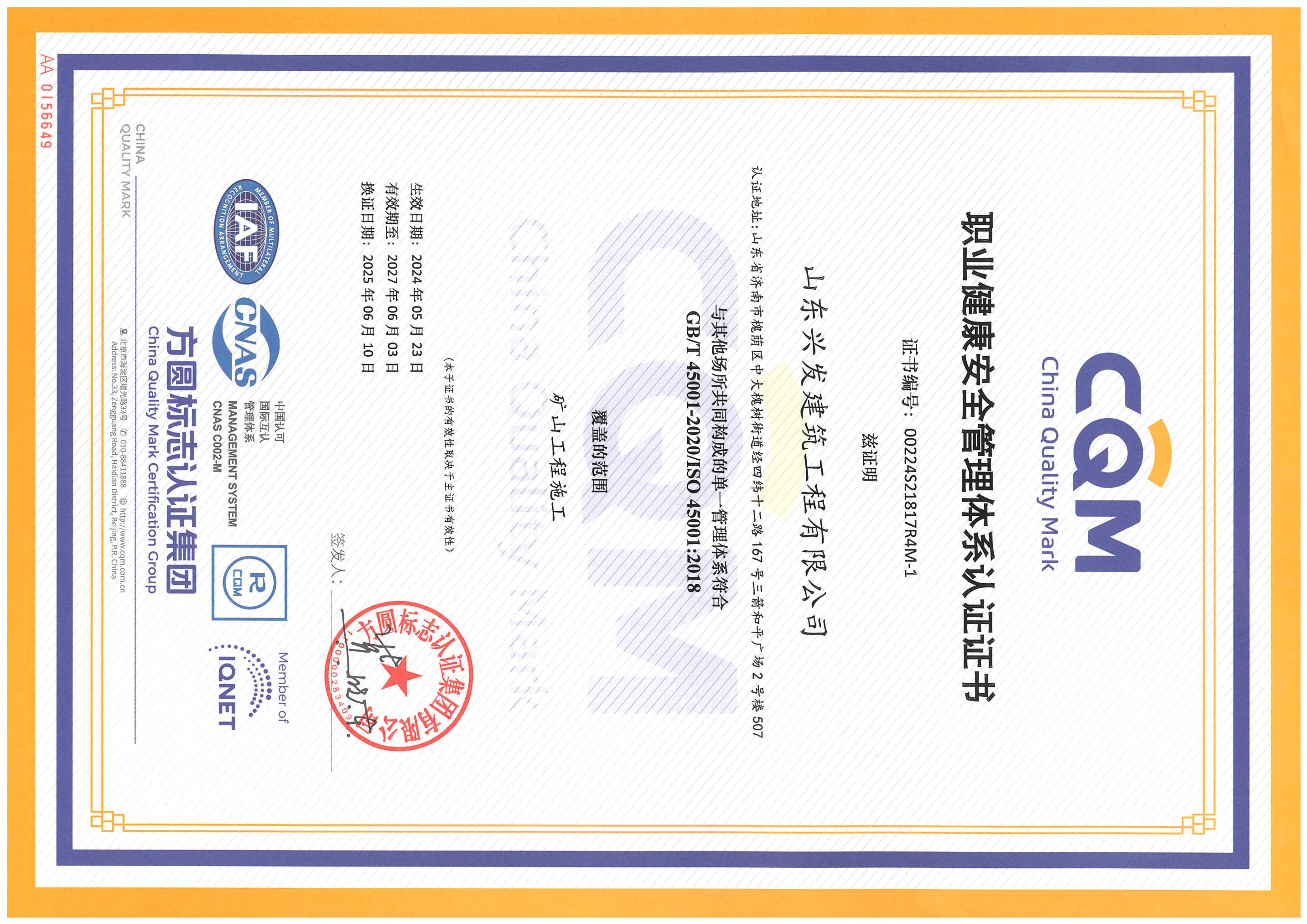 山東興發(fā)建筑工程有限公司資質(zhì)證書