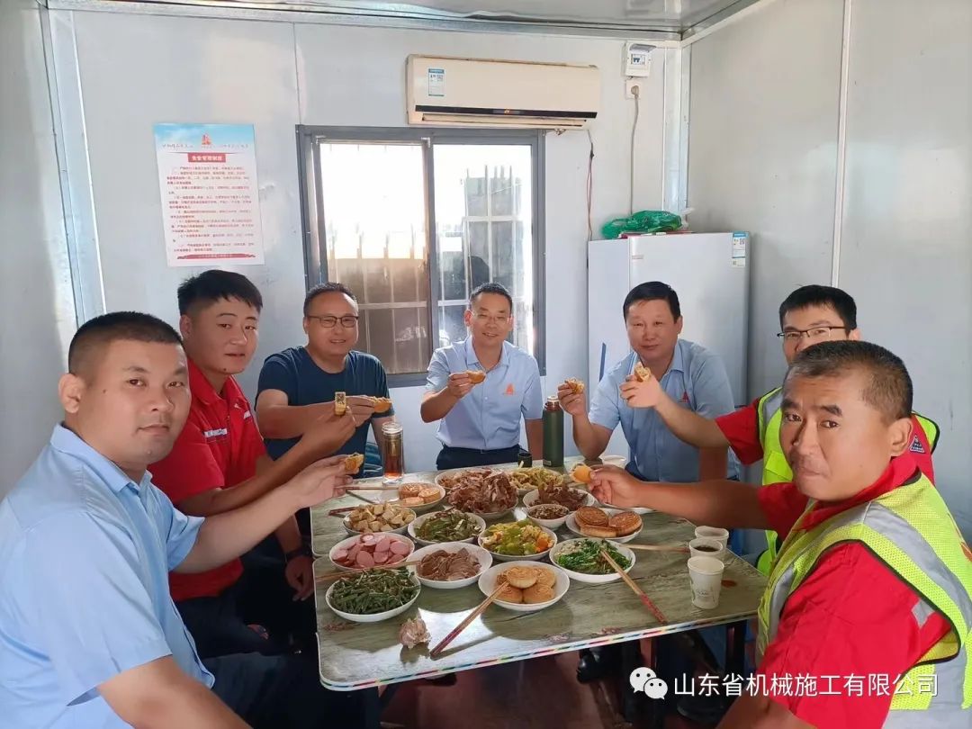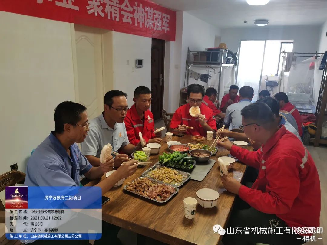明月寄相思,中秋共團(tuán)圓。9月21日中秋佳節(jié)當(dāng)天,沈繽董事長等六位公司領(lǐng)導(dǎo)分別前往六分公司聊城魏大廟項(xiàng)目、八分公司聊城康盛園項(xiàng)目及章丘百脈悅府項(xiàng)目、四分公司平陰海鑫項(xiàng)目、五分公司醫(yī)療硅谷項(xiàng)目、巖土分公司太古機(jī)場(chǎng)項(xiàng)目、一分公司卓遠(yuǎn)項(xiàng)目和日照港項(xiàng)目以及三分公司濟(jì)寧華潤萬象府、萬象匯項(xiàng)目,向堅(jiān)守崗位的一線員工送去節(jié)日的祝福與暖心的慰問,并將節(jié)日福利送到每位員工的手中。在慰問活動(dòng)中,領(lǐng)導(dǎo)們深入現(xiàn)場(chǎng)了解員工的工作、生活情況,對(duì)他們長期以來舍小家顧大家扎根一線、愛崗敬業(yè)的精神表示贊賞,對(duì)他們?yōu)楣舅龀龅呢暙I(xiàn)表示了衷心的感謝。為了讓奮戰(zhàn)在施工一線的廣大建設(shè)者們過一個(gè)有溫度的中秋佳節(jié),公司領(lǐng)導(dǎo)與堅(jiān)守崗位的員工們一起過中秋,吃了一頓別樣的“團(tuán)圓”飯。