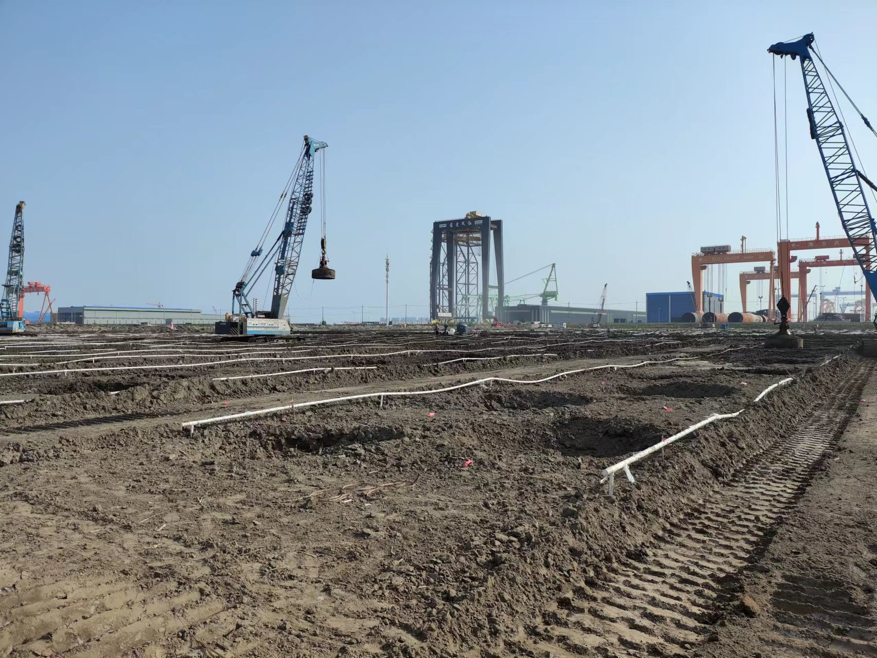 江蘇南通高端建筑智能制造產(chǎn)業(yè)基地項(xiàng)目,為通州灣示范區(qū)今年春季集中開工的重大項(xiàng)目之一,也是中鐵四局落子南通的重大戰(zhàn)略部署,用地約495畝,總投資20億元,建成后將成為行業(yè)領(lǐng)先、國(guó)內(nèi)一流的現(xiàn)代化鋼結(jié)構(gòu)產(chǎn)業(yè)基地。本項(xiàng)目地基處理面積15萬(wàn)平方米,公司中標(biāo)后快速行動(dòng),組織4臺(tái)強(qiáng)夯機(jī)、10臺(tái)套降水設(shè)備進(jìn)場(chǎng)施工,目前工程正在緊張施工中。