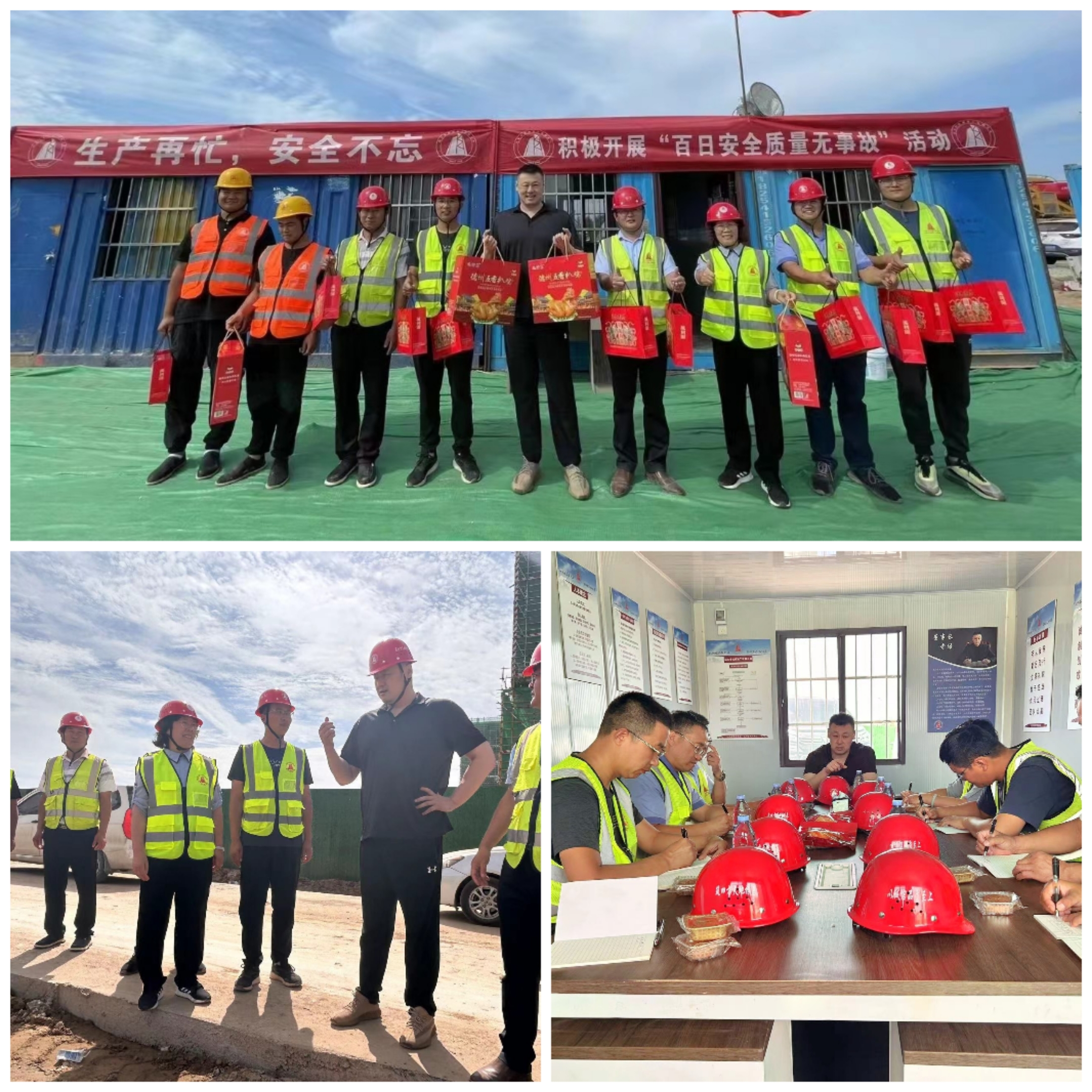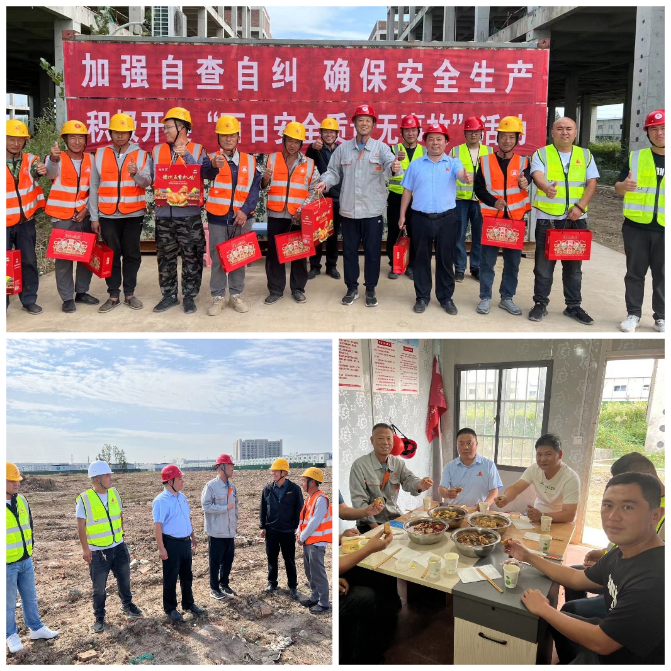 丹桂飄香時,月圓中秋到。9.29日,農(nóng)歷八月十五,在千家萬戶闔家團圓的日子,帶著對堅守崗位職工的牽掛與祝福,公司董事長沈繽、副董事長周廣泉、財務(wù)總監(jiān)徐占全、總經(jīng)理楊明、常務(wù)副總經(jīng)理劉志勛前往項目施工現(xiàn)場,看望慰問假期堅守一線的員工。