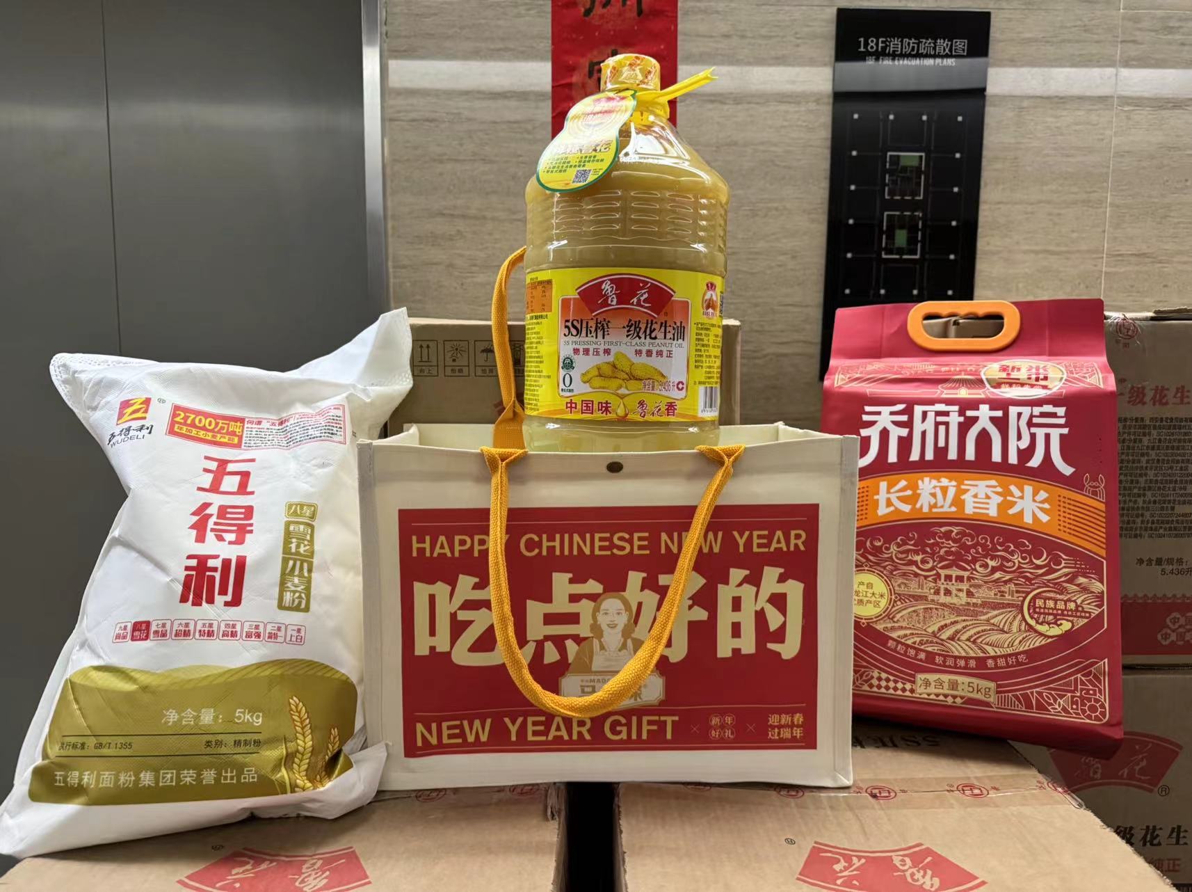花生油、牛肉腸、面粉、大米,一份份福利飽含著公司對員工們濃濃的關(guān)愛之情,也寄托著真摯的新春祝福,極大地提升了職工的幸福指數(shù)。